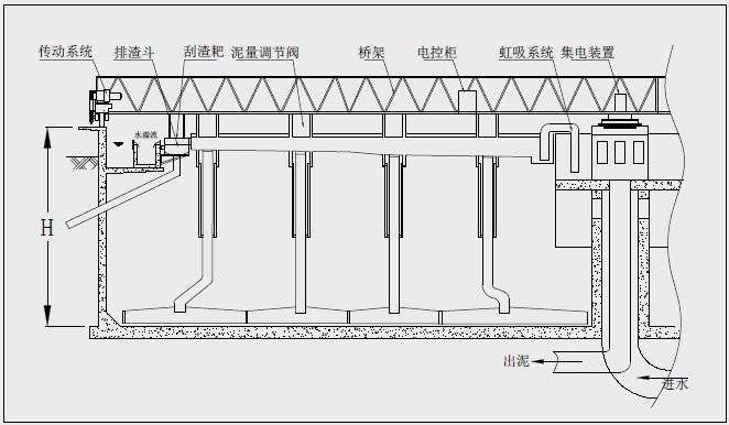 吸泥裝置分為兩種:水位差式和虹吸式,可按用戶要求定制。